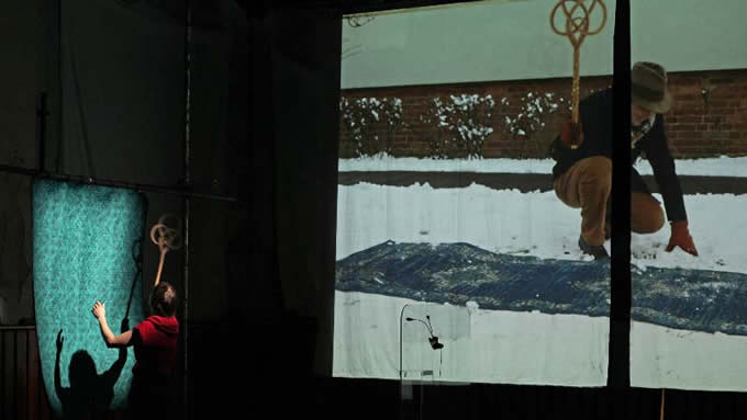 Steffi Weismann schöpft bei dieser audiovisuellen Komposition aus ihrer langjährigen intermedialen Praxis mit mikrofonierten Alltagsobjekten und performativer Musik. Stimmen und Aktionen werden in einem quadrophonischen Setting verräumlicht und verbinden taktile Vorgänge mit dem Hören und Sehen. Anfangs bewegen sich die Besucher*innen einzeln durch einen interaktiven Parcours, bis sie ihre Plätze auf einer der beiden Tribünen einnehmen. In der Live-Situation öffnen sich reale und imaginäre Räume in der Verbindung von Text, Klang und Bild. Der Abend lebt von Perspektivwechseln und der körperlichen Präsenz von Publikum und Performer:innen.