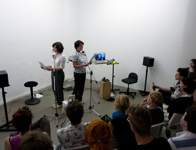 Zum Hörwissen (in) der Performancekunst / Ausstellung / Hörraum / Performance von Janine Eisenächer und Steffi Weismann, kuratiert von Livio Beyeler